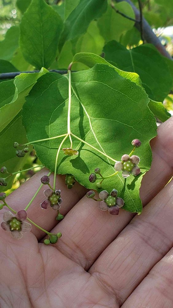 出掛けた先の 大木の 葉っぱ間から出ていた 小さな花