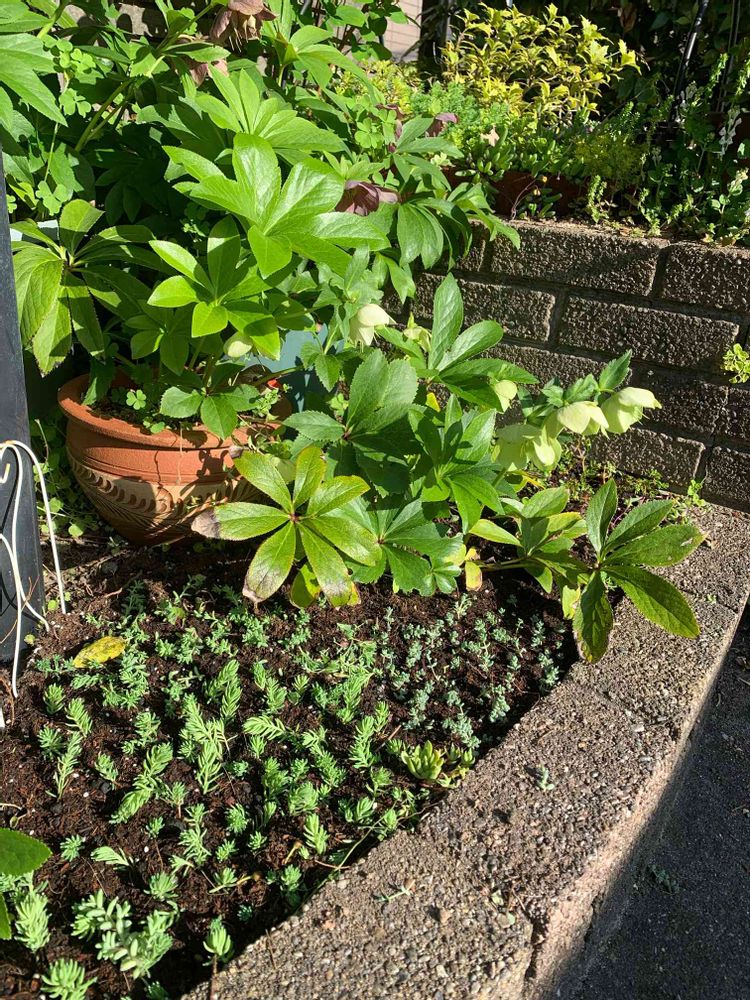 花壇下の植え込みの一部にセダム畑を作ってみました
