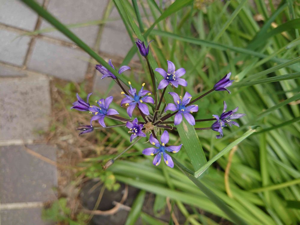 これで最後の見納めかな、今年の春の。紫のシラーペルビアナです。もう一枚、白い花を載せます。連投申し訳ない。