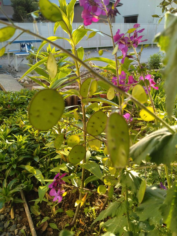 赤紫色の花が咲いて、小判の中に種が出きます。🎵