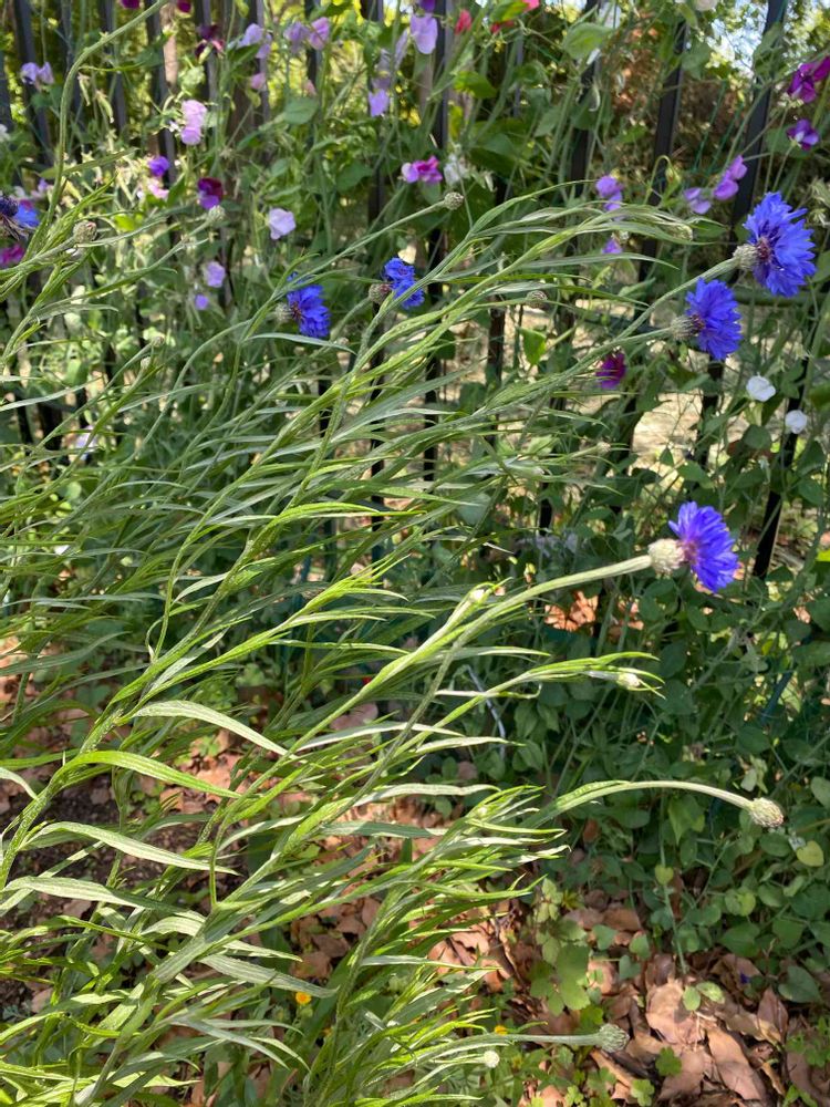 矢車菊とサヤエンドウのお花💚💙💜🤍💗💜💙