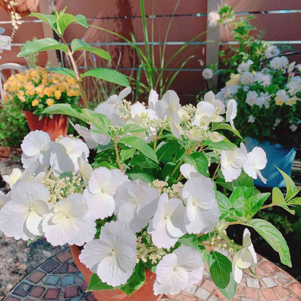ヤマアジサイ(鉢)も咲いてます🤣