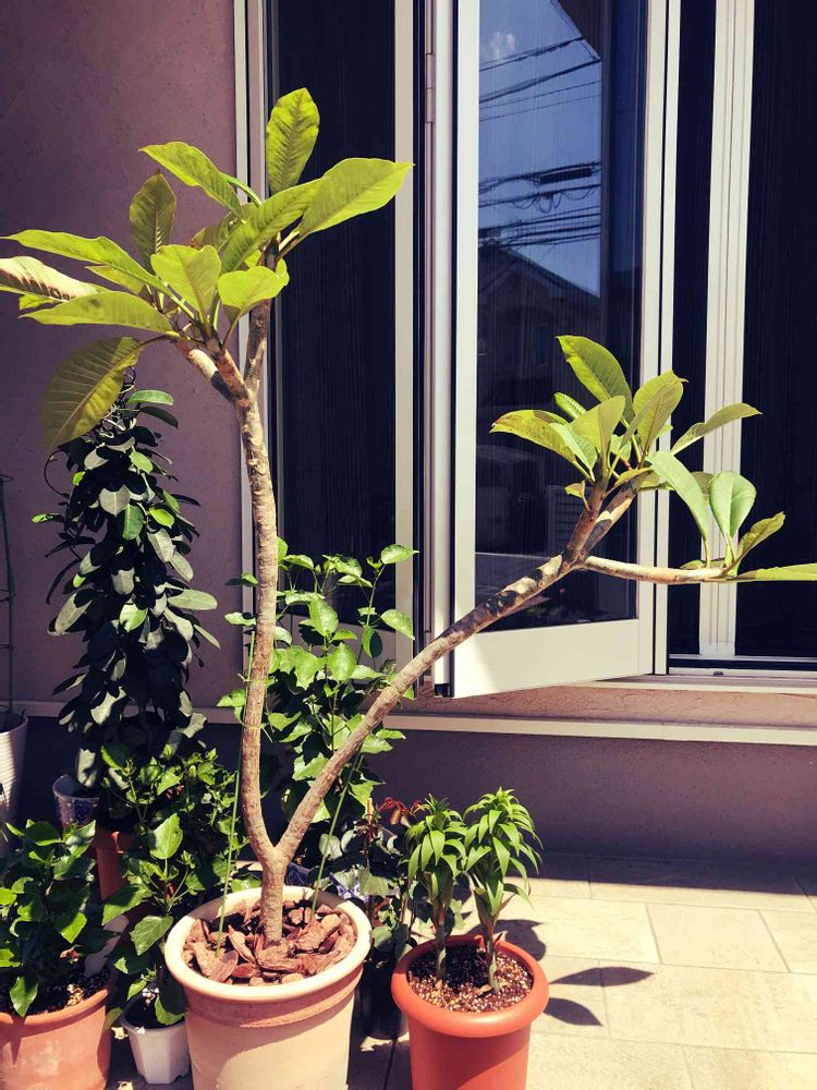 Y字プルメリアも、🌱ᕙ( ˙-˙ )ᕗ🌿