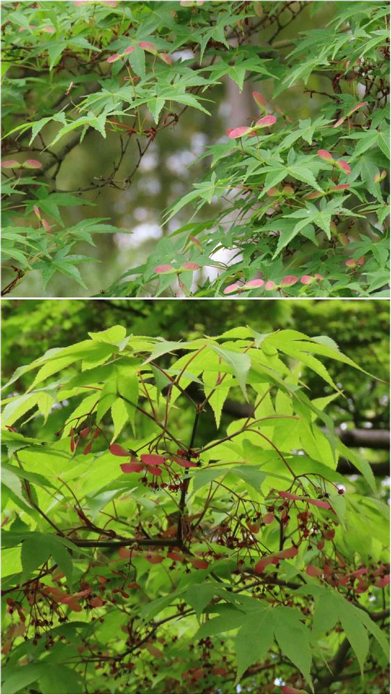 この時期は、実が付いた位置が葉の上はイロハモミジで葉の下はオオモミジ、見分け易いです♪