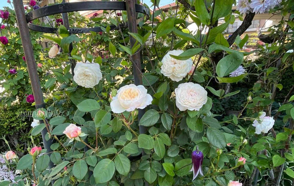 去年までオベリスクに一緒にいたシンベリンがテッポウムシにやられて春に突然枯れてしまいました😭その分までも頑張っているようにたくさん咲いています♪