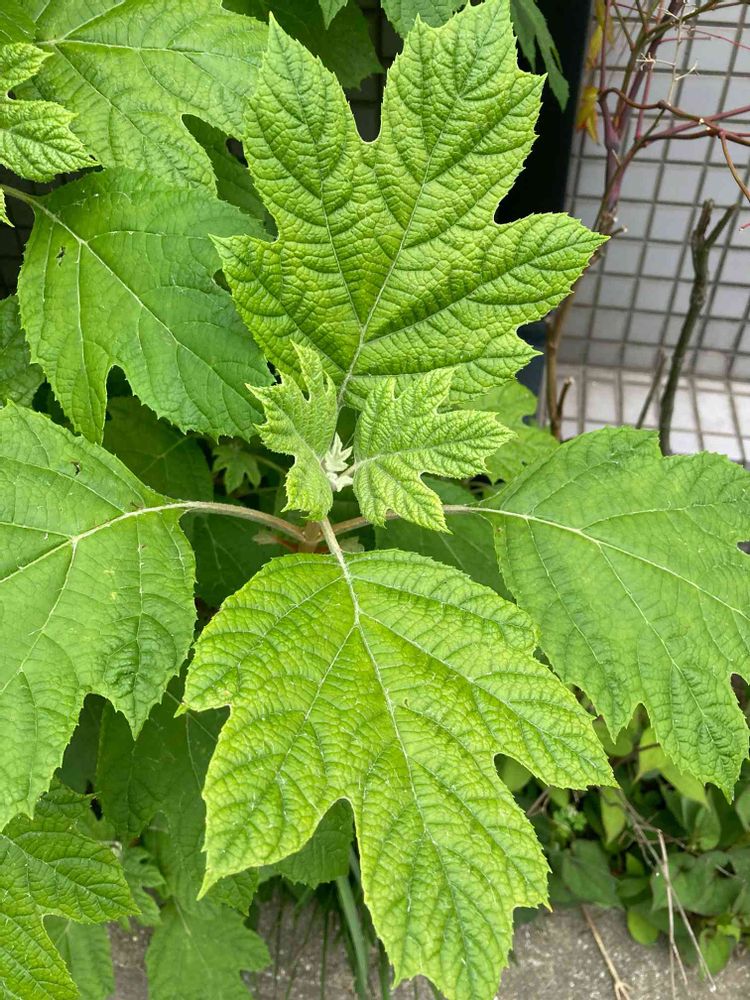 調べると、、カシワバアジサイ!と出ました。そういえば去年!白いのが咲いていました😄
