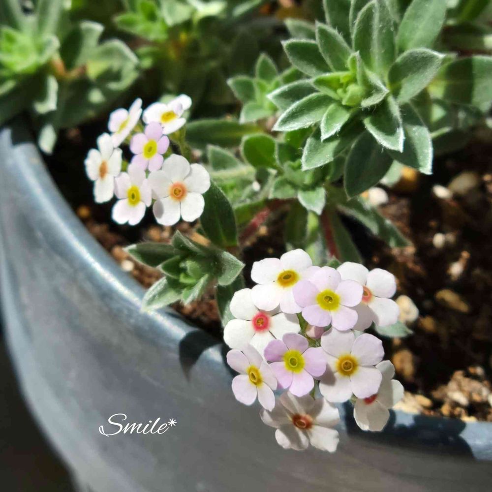 一瞬アリッサムのようにも見えますが、よ〜く見ると花びらがピンクや白で、中心がグリーン、黄色、ピンク色💚💛💗
