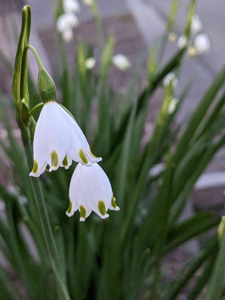 ニラかと思うくらいまっすぐ伸びて、スズランの種類かと思った白い花がユラユラしてて可愛かったのが第一印象のスノーフレーク。