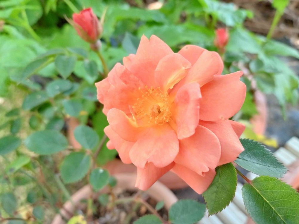 昨日は後ろに見える蕾と同じ位だったのに…一気に咲いてます🌹