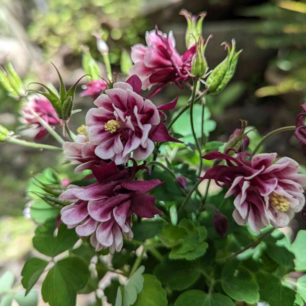 「西洋オダマキ ウィンキーダブルレッドホワイト」で、シックな色合いと八重咲きの美しい花姿に一目惚れしてしまいお迎えしました🤩💗
