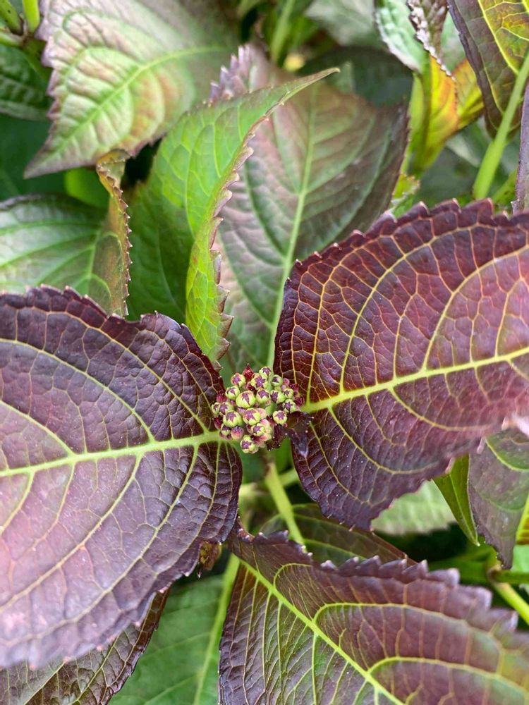 赤っぽい葉っぱのマダムバタフライに蕾がつきました(^^)