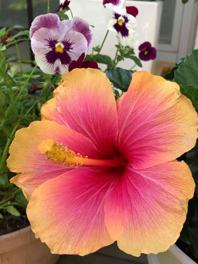 ハイビスカス🌺とビオラが一緒に咲いてるって、季節感ないな…