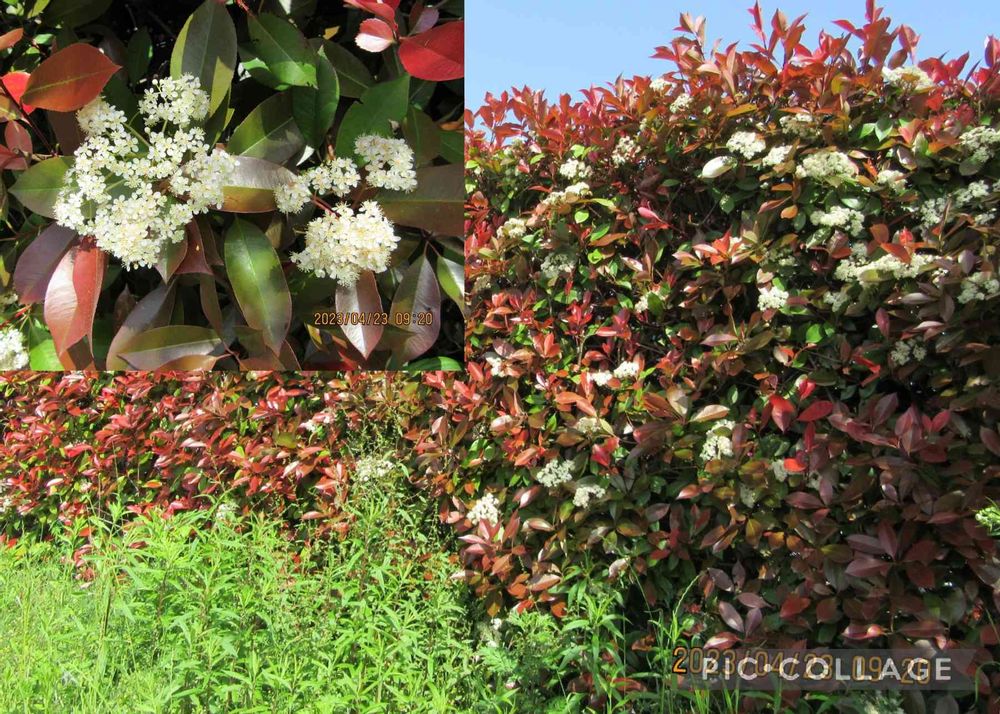 色鮮やかなカナメモチに白い綺麗なお花💞