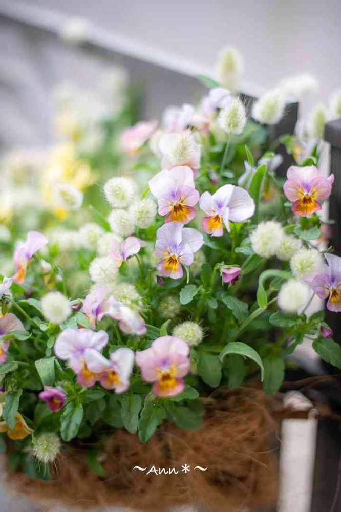 杏'sさんのフェンス,ビオラ,ラグラス バニーテールの投稿画像