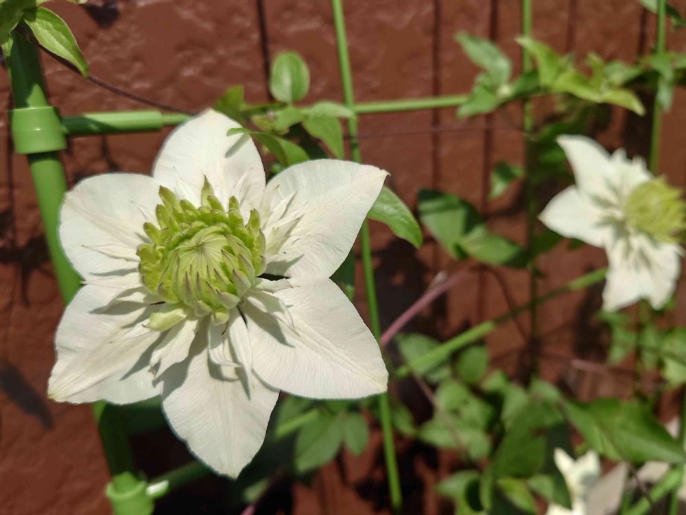こんばんは。クレマチスの白万重が咲いてきました( ꈍᴗꈍ)よく咲いてくれてます(*´ω`*)
