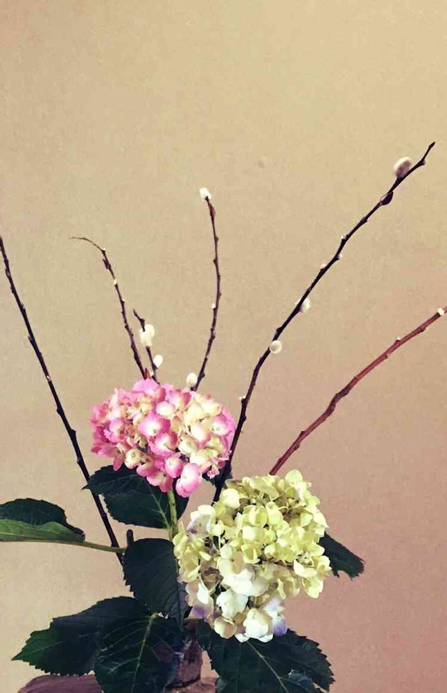 和室,アジサイ,ネコヤナギの投稿画像