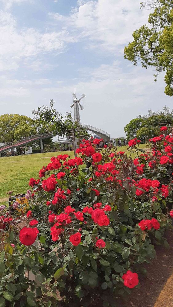 連休半ば 粕屋町の駕与丁公園のばら園に行って来ました。