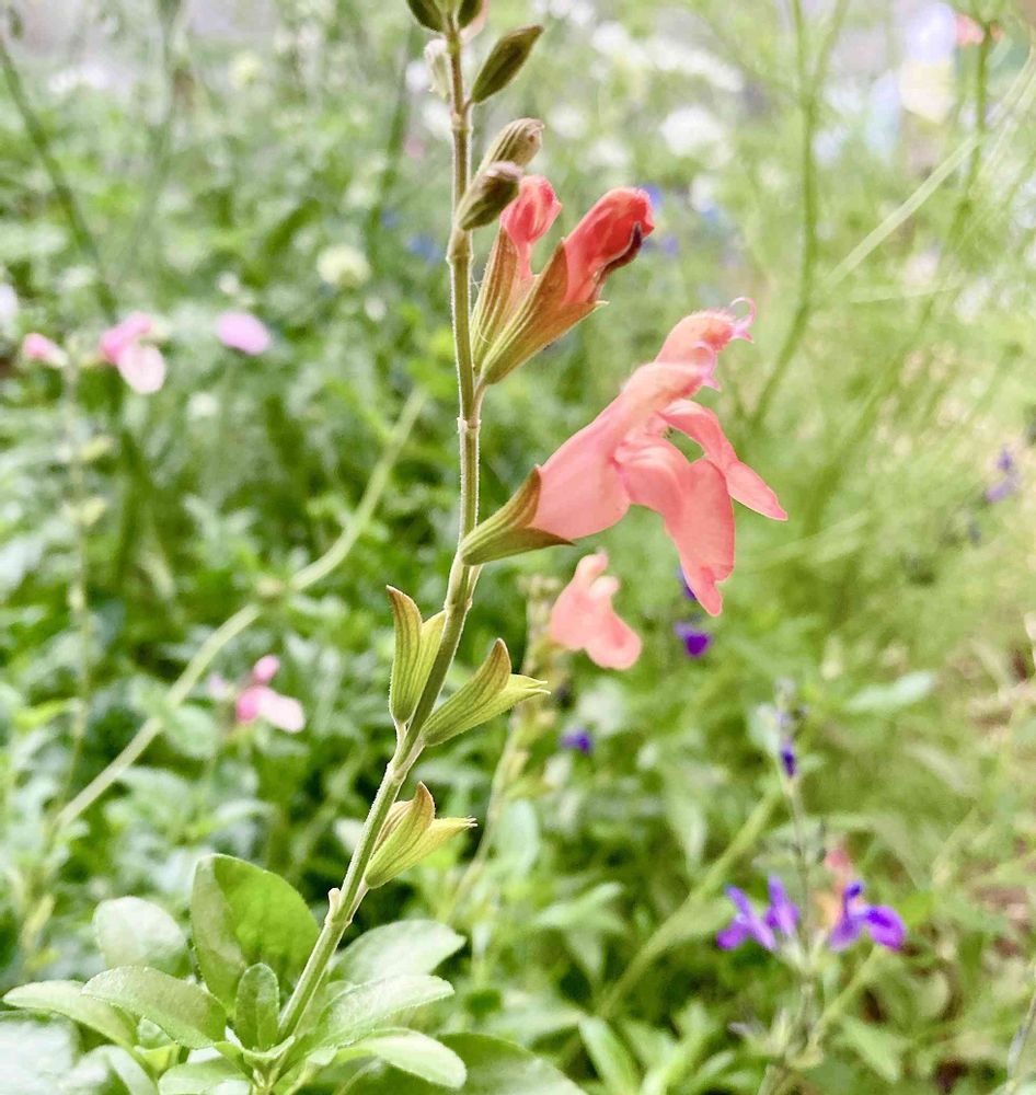 宿根サルビア チェリーセージのオレンジ色。サルビアといえば、小さい頃、真っ赤なサルビアの花を抜き取って、蜜を吸ったなぁ。