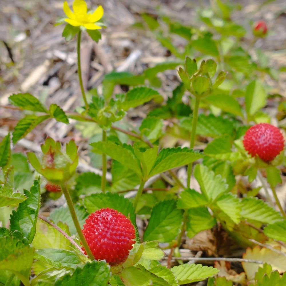 畑で黄色い花が咲いていたと思っていたら赤い実がたくさんできました。