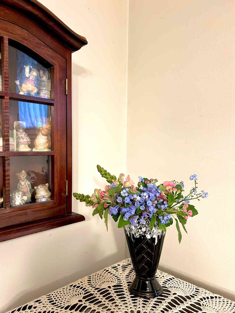 お花のアレンジも素敵ですが戸棚の動物達も楽しそうに眺めているのが気になります🎶💓