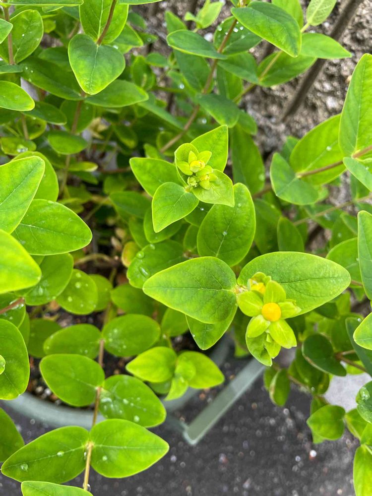 おはようございます😊やっと2年目のヒペリカムに花が咲きそう💕