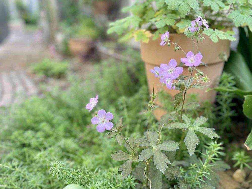 庭のゲラニウムが次々に花をあげている中、昨年迎えたこの子がムード出してますꕤ︎︎·͜· ︎︎