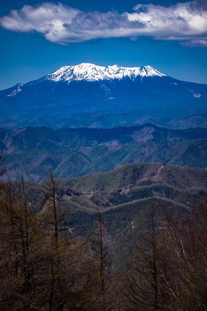 ゴールデンウイークの中休みに展望の良い山から見た御嶽山です。