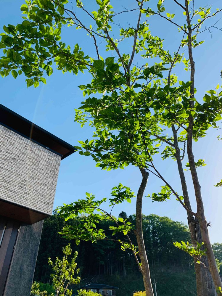 我が家のシンボルツリー。他の植栽に比べると葉付きが弱く心配だけど、元気に新芽を伸ばしてる☺️