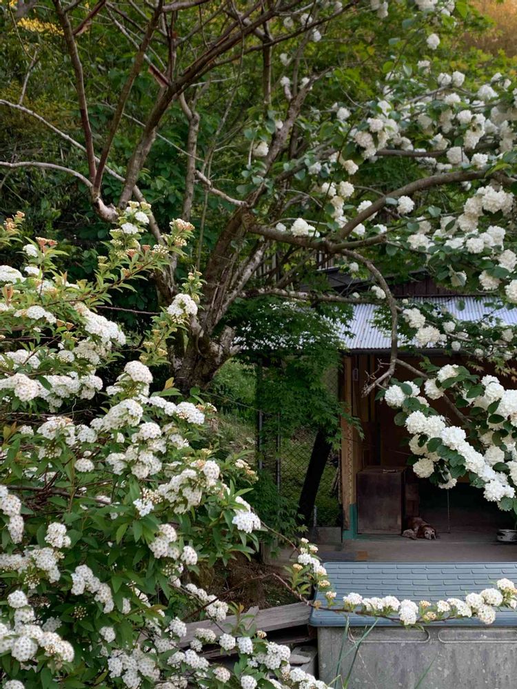 カールくん🐕の犬舎の側のコデマリも咲いてます😀オオデマリは上のほうが枯れてきてます😅