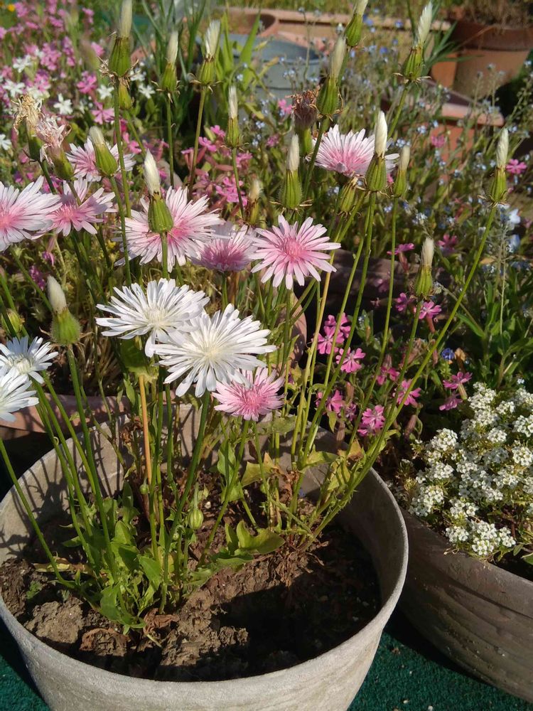 矢車コスモスさんの小さな庭,白色タンポポ,桃色タンポポの花の投稿画像