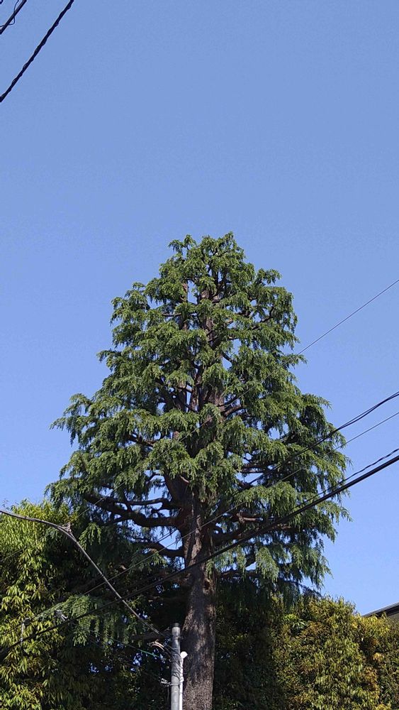 雲一つなく、澄んだ青空の下、ヒマラヤスギ🌲がとてもきれいです。