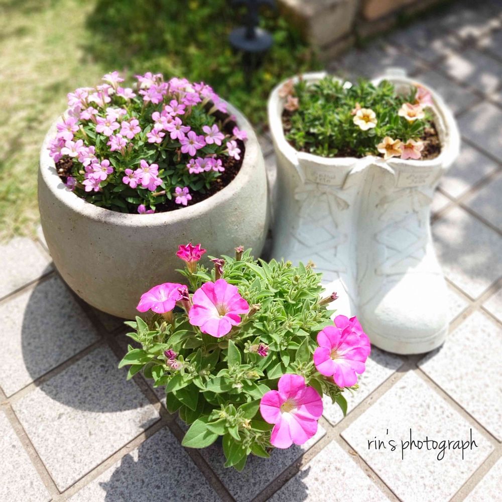 りんさんのサフィニアアート 小梅ちゃん,サフィニアプチ さくらもこもこ,ミリオンベル アンティークレモンの投稿画像