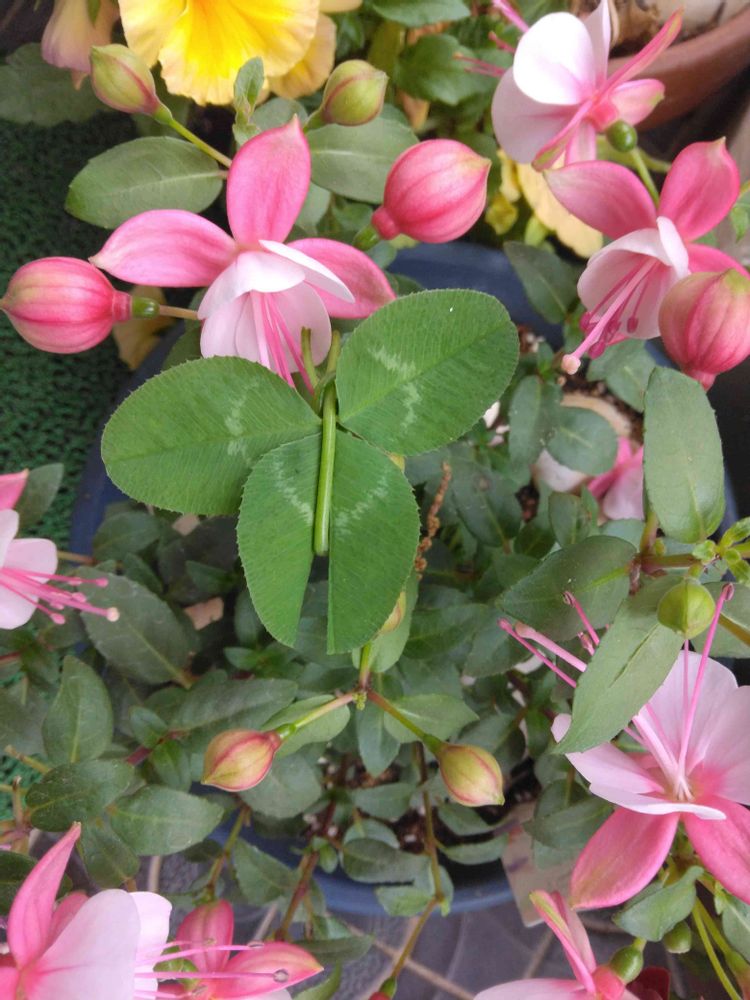 ☘️シロツメクサの葉で作った🦋蝶をフクシアの💠花に乗せてみました😆