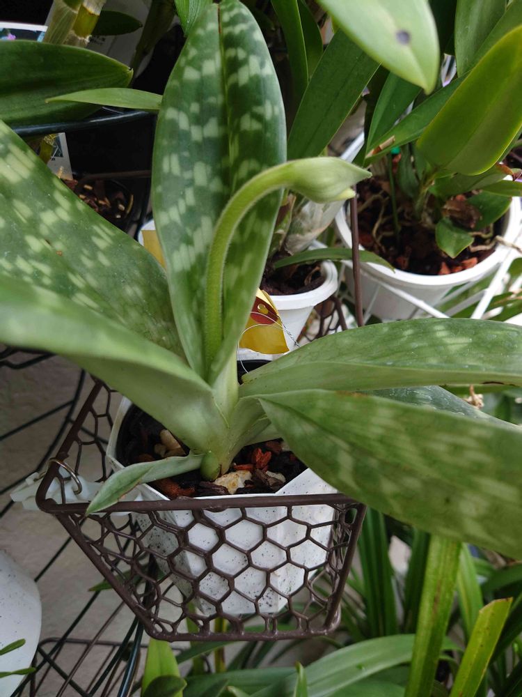 今年の1月名古屋フラリエでいただいた品種名が謎のパティオペディラム¥1000のつぼみが上がってきました。