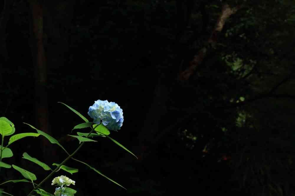 誰も見向きもしない様な暗がりに、この紫陽花にだけ不思議と太陽光が当たっていたので、静かな雰囲気の写真に出来ました🎵٩(ˊᗜˋ)