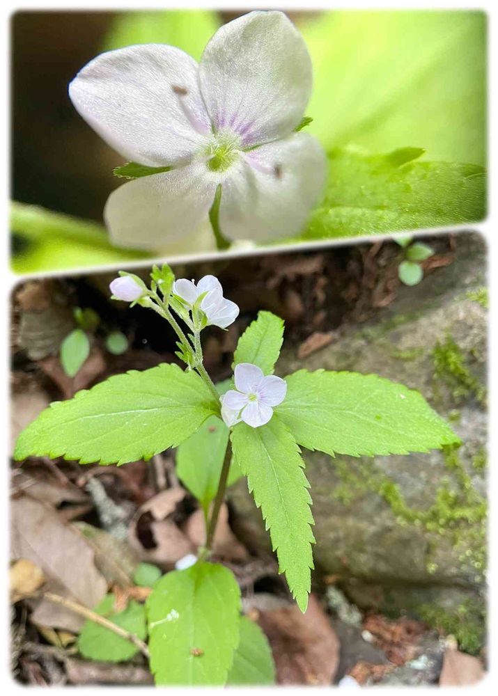 お花はオオイヌノフグリに似ているので、調べたら、何方もオオバコ科クワガタソウ属なんです。葉っぱが全然違いますけどね〜🌱😂
