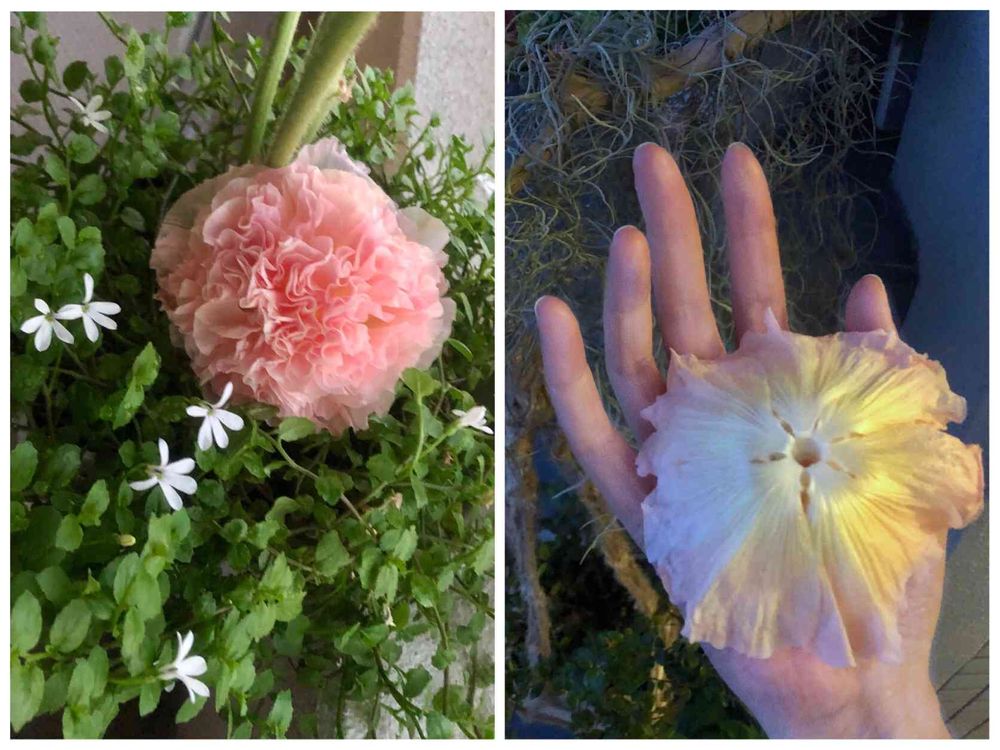 わぁ〜✨✨すごく素敵✨八重咲きホリホックはじめて見ました❤️とても魅力的なお花💐裏側が貝🐚みたい。こんなに綺麗なら少し飾っておきたいですね(๑˃̵ᴗ˂̵)
