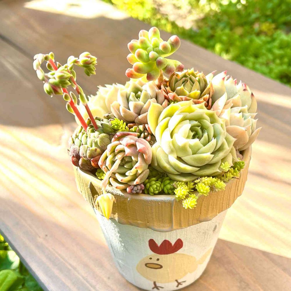 2021/2にGSスタートしました(*´`) 気ままな多肉ライフです☺️ 2022/7にミンネで販売スタートしました🍀 ミンネの中でニワトリ鉢で検索すると出てきますので良かったら覗いてください♡ https://minne.com/@sirokuma0625 多肉が大好きです❤️ 今年、年中になった息子と遊びながら手作りしたり少ない多肉で奮闘迷走中、全くの素人なので笑ってください😂 多肉の地植えに興味があり失敗しながら日々観察して改良を重ねてます(o´ω`) 多肉の寄植えもハマってきました😆 葉挿しっ子を上手に育てられるようになりたいです🫣 2021/9/23から義母の🐶(スタンダードダックス11歳)を引き取りました😁 🐶を飼うのが初めてなのでこちらも奮闘迷走中です😆 元々🐈2匹飼ってて🐶も加わり家事育児雑用等々益々慌ただしい生活です😂 その中で多肉ちゃん達は癒しです❤️