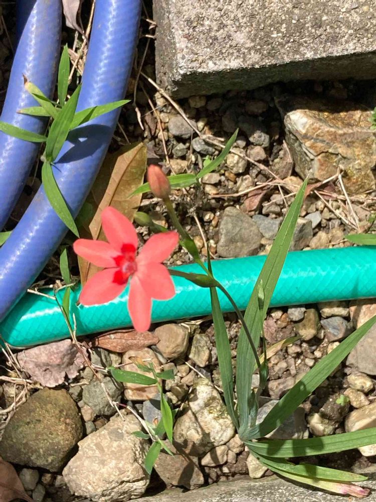 自宅マンションに帰って何気なく花壇の方を見たら姫檜扇が一輪健気に咲いていました。背景は何とも無粋ですがご容赦🙇