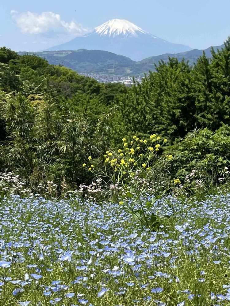 雄大な景色の足元に広がるネモフィラ、視線の先の富士山🗻、まさしく絶景ですね🎶