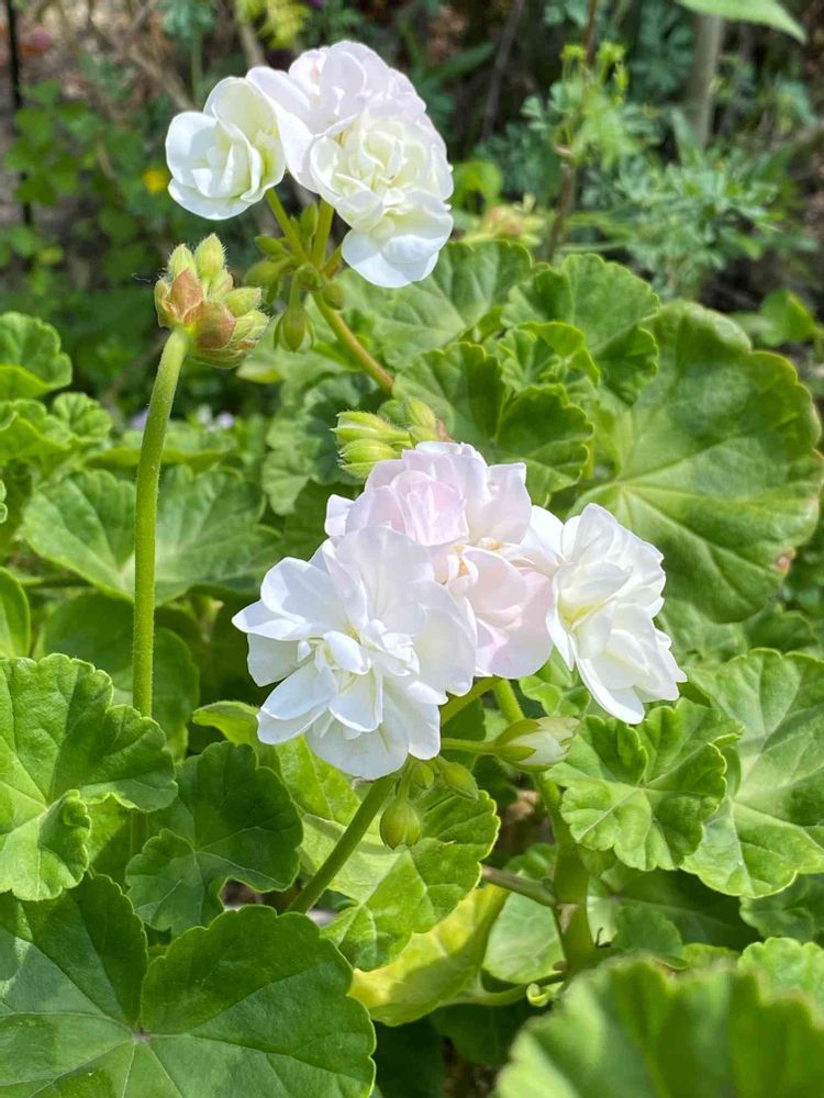 赤やピンクのゼラニウムは2.3年でダメになりますが、白ゼラニウムはほんとに強く、今年もいっぱい咲いてます☺️まるぞうさんちの子も元気に長生きしますように❣️