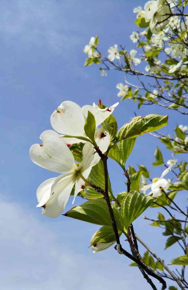 青空に映えますね₊✼̥୭ ࿐⋆*₊✼̥୭ ࿐⋆💙ྀྀིハナミズキのお花はね