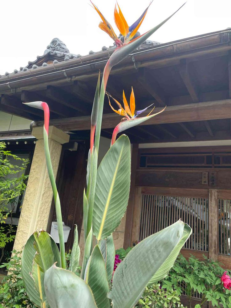 先日、小松市に行って、ご近所に極楽鳥花が咲いていました。お願いして、📱させて頂きました。