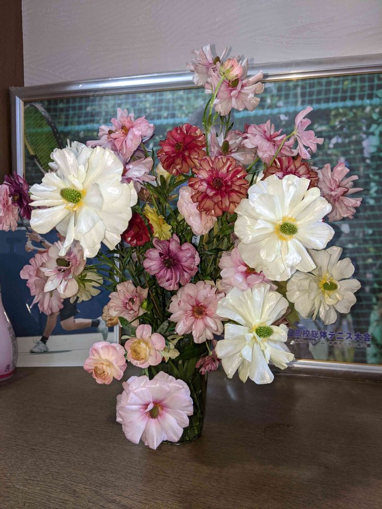 ラナンキュラスラックス、 今日までなんとか 持ちこたえてくれましたが 、全て 花を落とし 球根を太らせたいと咲いてる花を落としてしまいました。