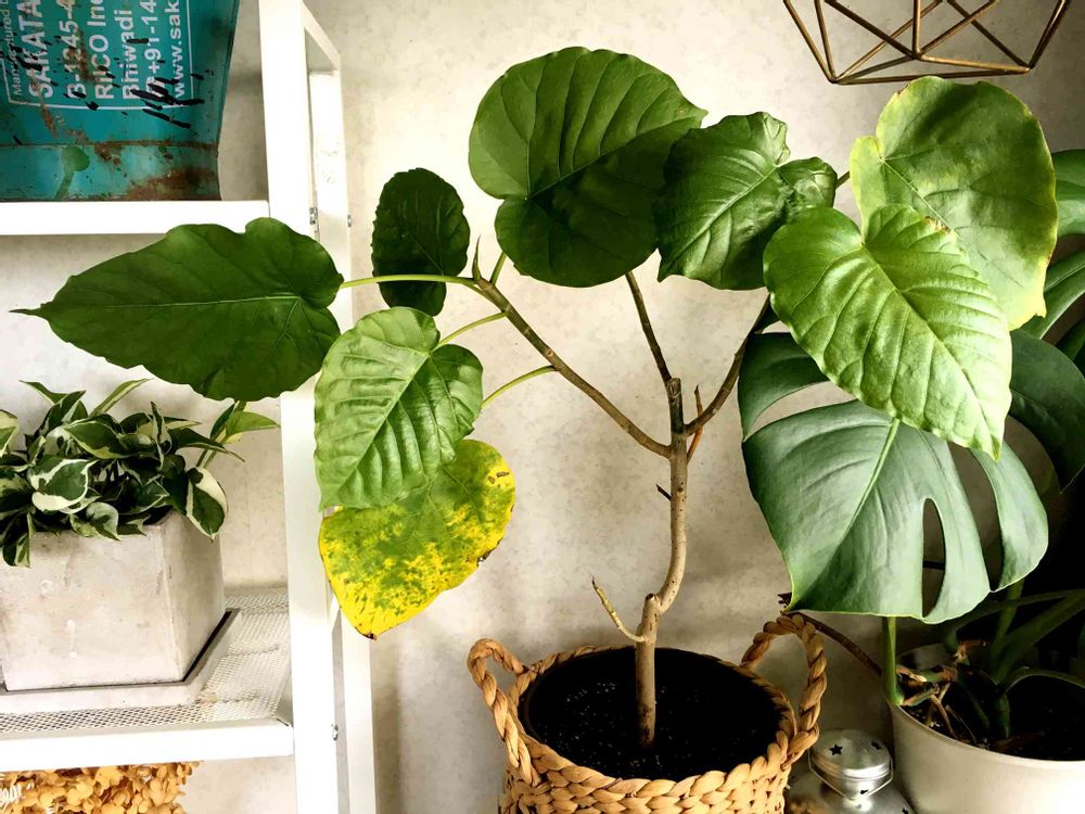 元気だったウンベラータさんに黄色い葉っぱが目立つように。。