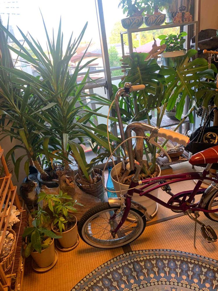 #ユッカ#キングバンブー#ミリオンバンブー#モンステラ#デリシオーサ#パキラ#ポトス#コーヒーの木#カポック#ねこ#自転車