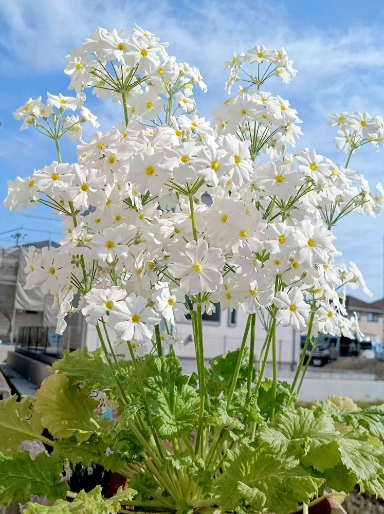 青空とサクラソウのシロ色がとってもステキですね。