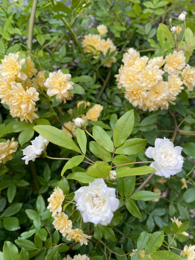 今年2月に亡くなった叔母が3年ほど前に挿木してくれた2色のモッコウバラ🤍💛