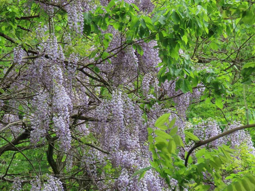 この時期あちこちで覆い被さるように大きな樹を薄紫色に飾っています。