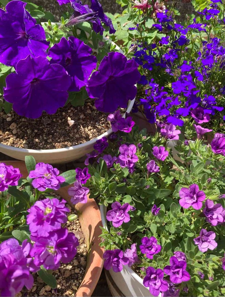 ペチュニア、カリブラコア、ロベリア、ストック...ブルーがたくさん💙美しいです💙